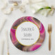 Pink and Black Abstract with Gold Swirls Wedding Paper Plate