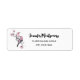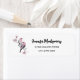 Address labels with a watercolor painting. 2 pink and black birds sitting on a tree branch with pink blossoms.