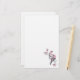 Stationery with a watercolor painting. 2 pink and black birds sitting on a tree branch with pink blossoms.