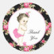 Pink and Black Chintz Rose Baby Shower Classic Round Sticker