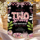 Pink and Black Daisy 2nd Birthday Retro Birthday Invitation
