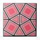 This ceramic tile features a pink, black and white geometric pattern suitable for decorating small spaces with an accent. You can also use the tile as a trivet. The simple, but bold, geometric pattern of squares and triangles lends itself to many design schemes. Geometric patterns are fantastic to use in design because, by nature, the human eye is naturally drawn to them.
