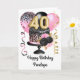 Personalised gold, pink and black birthday cake 40th birthday card for her. The front can be easily personalised with her name as well as the inside card message. This beautiful pink and black 40th birthday card would make a wonderful keepsake for her.