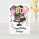 Personalised gold, pink and black birthday cake 80th birthday card for her. The front can be easily personalised with her name as well as the inside card message. This beautiful pink and black 80th birthday card would make a wonderful keepsake for her.