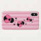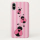 This iPhone X case features a cute and trendy pink and black striped pattern with ladybugs.