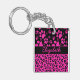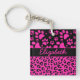 Pink and Black Leopard Print and Paws Personalised Key Ring