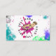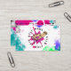 Pink, magenta, black, lime green paint splatter personalised business cards.