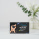 this business card is black and pink with a lens on it. Words can be rearranged and or taken off or added. You can also delete any social media icons by clicking on "Edit using design tool".
