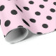 Pink and black polka dot wrapping paper. Custom background colour behind the polkadots pattern. Great polkadotted gift wrap for Birthday, Wedding and Christmas presents. Change the quantity to get the cheapest price per role.