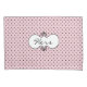 Pretty pink pillow case with a tiny black polka dot pattern. A vintage style black and white decorative text area, on the front, has black script text reading Hers. Personalise the text to read what you want.