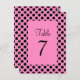 Black polka dot pattern on pink with room for a table number. You can customise and erase the word "Table" and centre the number.