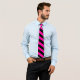 This tie has a black and pink striped design on it.