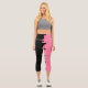 Pink And Black Two Colour Half Sides Stripes Capri Leggings