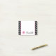 This fun notepad features classic black and white polka dots with a cute pink and black daisy.  Personalise with your choice of name or special text.