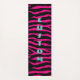 Pink and black zebra animal print thick big custom Yoga Mat. Trendy modern yoga mats with personalised name, quote or monogram. Cool Birthday gift idea for yoga lessons teacher, personal trainer, coach, fitness instructor, friends, family, mum etc. Quality gym equipment for yoga class, sit ups, exercises, physical therapy and more. Black or custom colour background with neon pink stripes.