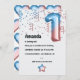 Pink and blue number balloon first birthday party invitation.