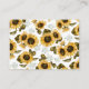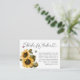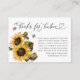 Rustic bee theme gender reveal party book request card featuring watercolor illustration of yellow sunflowers and baby's breath with bumblebees. The card asks guests to bring in a new or used children's book instead of a card.