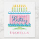 A pink and blue birthday cake with green candles and pedestal to personalise that perfect bottle of wine birthday gift.