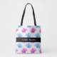 Pink and Blue Dahlia, Floral Pattern, Your Name Tote Bag