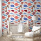 "Bring underwater charm to your walls with our pink and blue fish pattern wallpaper, perfect for a playful and vibrant room."