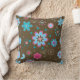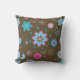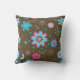 Pink and Blue Floral Pattern Brown Throw Pillow