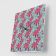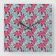 Pink and Blue Floral Seamless Pattern Square Wall Clock