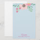Charming and chic, this stationery paper is absolutely breath taking. Displaying a beautiful pink and blue floral design on a light blue background, the flowers at the top are attention grabbing and welcoming. The bottom of the paper features two templates one for a name signature and the other for personalised text both written in pink.