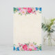 Stationery with a frame of pink and blue wildflowers, posies and pansies with various sprigs and leaves. Colourful and bright. The centre is a faux parchment image. Soft and summery.