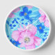 This colourful design features beautiful pink and vibrant blue flowers on a light blue background.