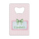This cute bottle opener features a pink frame with blue and white stripes and topped with a preppy green and white gingham plaid bow on a background of pink and white polka dots on each side. Personalize with your choice of name or special text on the front and back. Fun for personalized party favors and gift bags.