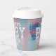 Whether you're having a boy or a girl, these pink and blue gender reveal paper cups are the perfect way to celebrate. The design features a groovy balloon theme and space for your names and party details. Can also be used for boy/girl twin baby shower. Just change the text! He or she? What gender will your baby be?