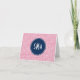 Pink and Blue Greek Key Pattern Monogram Note Card
