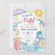 Pink and Blue Groovy Pastel Sibling Pool Birthday Invitation