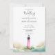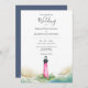 Pink and Blue Lighthouse Beach Destination Wedding Invitation