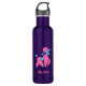 A colourful pink and blue poodle waterbottle with the owner's name beneath the image.