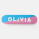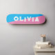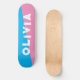 simple pink and blue skateboard for him, for her or for them is your personalised name in a bold funky and grunge distressed lettering. Get the prefect abstract design for a teen birthday or Christmas present. Just write your own name for a custom skateboard.