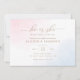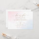 Invite friends and family to a gender reveal with this beautiful invitation, featuring a pink and blue watercolor wash with gold typography.