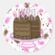 Pink and Brown Chocolate Cake Birthday Classic Round Sticker