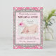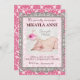 Pink and Brown Damask Birth Announcement. Super cute and totally customisable with your photo and your own text.