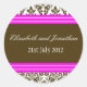 Pink and Brown damask wedding sticker which can be used as an invitation seal.