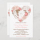This floral and whimsical wedding invitation features a heart-shaped pink and brown roses, leaves and other variety of flowers. This invitation is part of a wedding invitation suite. Matching items are available below.