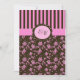 This pink and brown floral and striped pattern wedding invitation would be perfect for a pink and brown wedding theme. The front has a spot for you to add a monogram detail of the Bride and Groom's first Initials, or remove one of them and use the married surname initial. If you require any other items in this design, please email me your request. Existing matching items in this design can be found below.