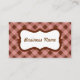 Pink and brown gingham gives this business card retro style. Customise this cute business card to suit your needs. Add or delete information, change the font style, font size, etc...The design is from original art. Use this stylish business card for a salon, small business, home decor, gourmet food, chocolates, ice cream shop, nail salon, inn, interior design, preschool, cake designer, child care, gift shop, bed and breakfast, boutique, bakery, coffee shop, restaurant, etc...
