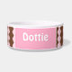 Pet bowl with pink and brown pattern. Add your name.