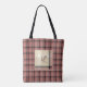 An assortment of pink, black and tan plaids with a square enclosing an initial.