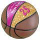 Pink and faux Gold Glitter Personalised Basketball Ball or ANY COLORS. CALL Designer Linda for Design, Colour or Product CHANGES: 239-949-9090 Text Box Template for you to type in her Team Name, Name, Year, Jersey Number or Monogram or your special message or Delete. Honour her with basketball championship award or her high school senior basketball gifts. CALL Designer Linda: 239-949-9090 to CHANGE the COLORS to any colours.