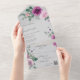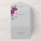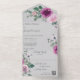 Introducing the perfect all-in-one wedding invitation featuring exquisite pink and fuchsia watercolor roses set against a pale grey background. This stunning invitation is designed to capture the essence of romance and elegance, setting the tone for your special day. The All-in-One wedding invitations are both beautiful and practical by combining the wedding invitation with an easy to remove perforated RSVP postcard. They are also quick and easy to prepare for mailing. Simply address the invitation, fold the back flap and seal with the included clear stickers. Once your guests receive the pre-addressed invitation they simply tear off the perforated RSVP card and drop it in the mail. The addition of the QR code allows your guests to easily access your wedding website for information including reception details and dinner choices!