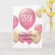 Pink and Gold Balloons 39th Birthday Card