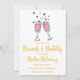 Elevate your bridal shower with this chic and trendy design. Featuring a delicate pink and gold champagne bottle surrounded by cute modern floral elements, this design is perfect for a brunch-themed celebration. The botanical details add a touch of natural beauty, while the blush tones create a soft and feminine atmosphere. This invitation is sure to impress your guests and set the tone for a memorable bridal shower.