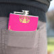 Pink and gold crown pattern hip flask